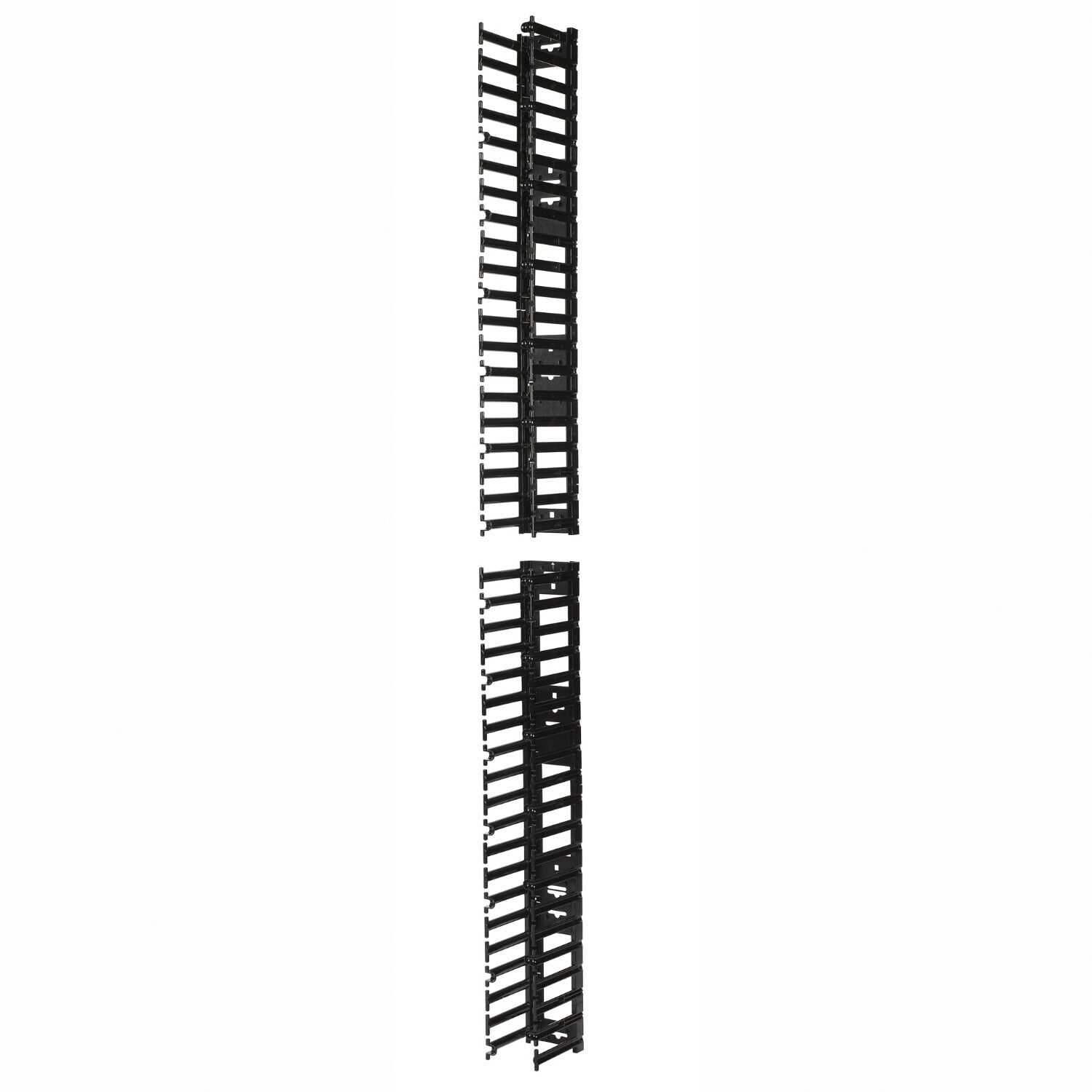 Presentation The vertical channels have smooth plastic fingers at 1U increments to allow patch cords to enter and exit in an organized manner.